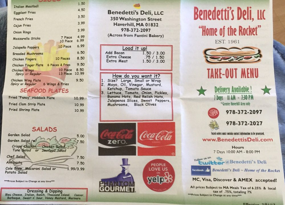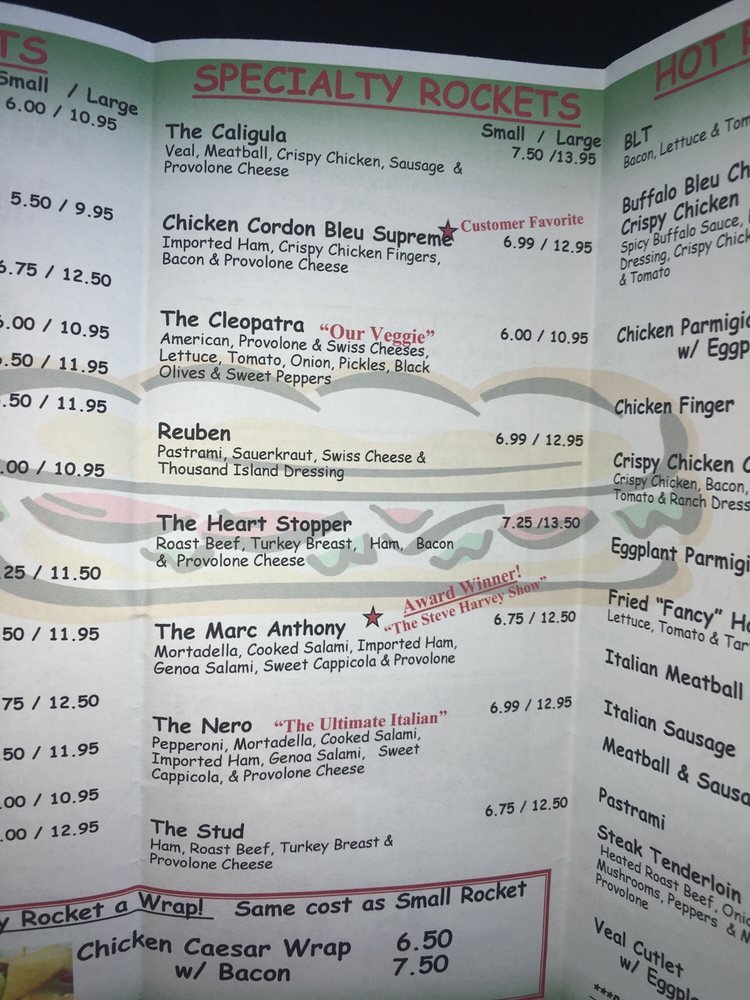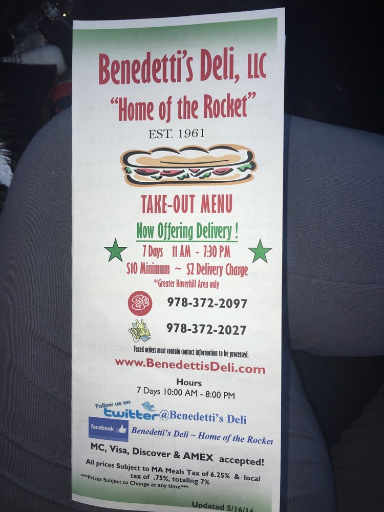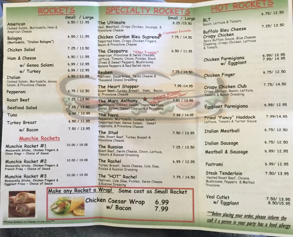 Introducing the menu at Benedetti's Deli - Home of The Rocket, located at 350 Washington St Haverhill, MA 01832. The deli offers a variety of delicious subs filled with generous portions of meats and fresh ingredients. Customers rave about the quality and quantity of the food, with many mentioning the friendly and courteous staff. The menu includes fan favorites like the Marc Anthony, Rueben, and the must-try Rocket. Dishes like the Pastrami sandwich and onion rings receive high praise for their flavor and portion sizes. Customers appreciate the filling and flavorful subs, with some suggesting minor improvements to fill them fully from end to end. Overall, Benedetti's Deli is a go-to spot for tasty subs and sides that will leave you satisfied and coming back for more.